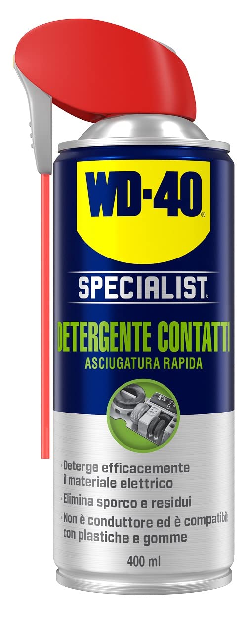 La rapidità di evaporazione è tanto un vantaggio quanto un elemento da dosare. Un’asciugatura rapida riduce i tempi d’intervento e il rischio di cortocircuiti, ma se il solvente evapora troppo in fretta potresti non avere il tempo sufficiente per sciogliere depositi molto resistenti: in questi casi una seconda erogazione o una pausa di posa possono essere necessarie. Verifica anche la densità del getto e la presenza di accessori come cannule per puntare il flusso nei punti più stretti.